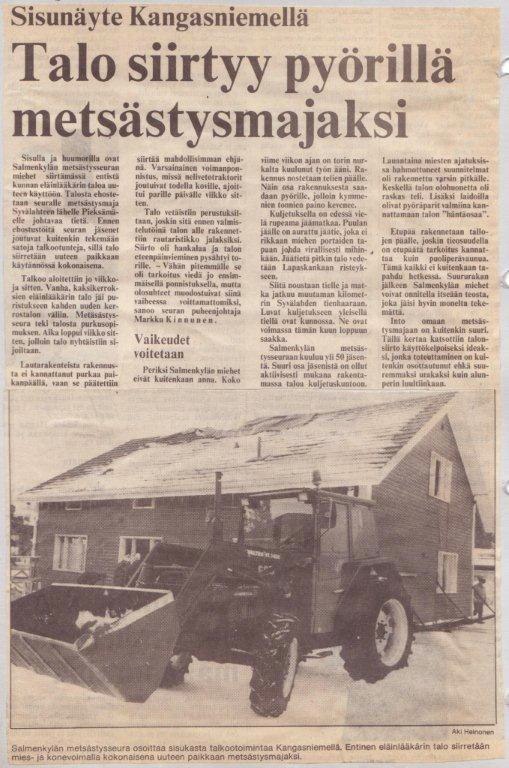 Talon siirto oli Kangasniemellä valtaisa mediatapahtuma. Suurin sitten 1960 maatalousnäyttelyn. Toimittajat kuvasivat ja kirjoittivat. Kymppiuutisten kevennyksessä epäiltiin, että talo jää viinakaupan nurkalle kirkonkylään. Paljon oli epäilijöitä, mutta paljon myös kannustajia ja talkoisiin osallistui paljon myös seuran ulkopuolista porukkaa. Tapahtuman vuoksi kuntavaaleissa äänestysprosentti romahti ja kirkossa siunailtiin missä on kirkkokansa.